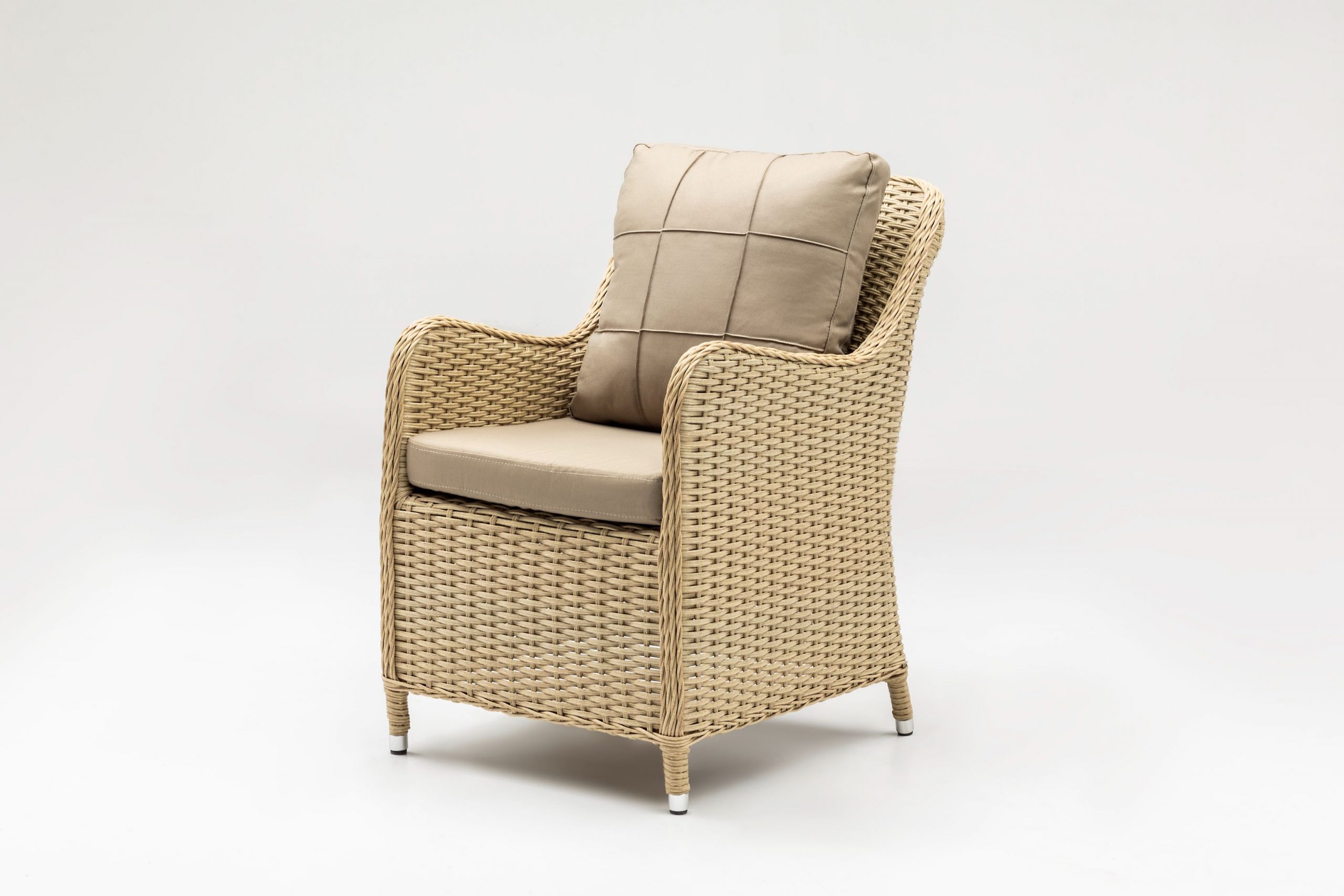 Alüminyum iskelet üzerine sentetik rattan örülerek imal edilmiştir.