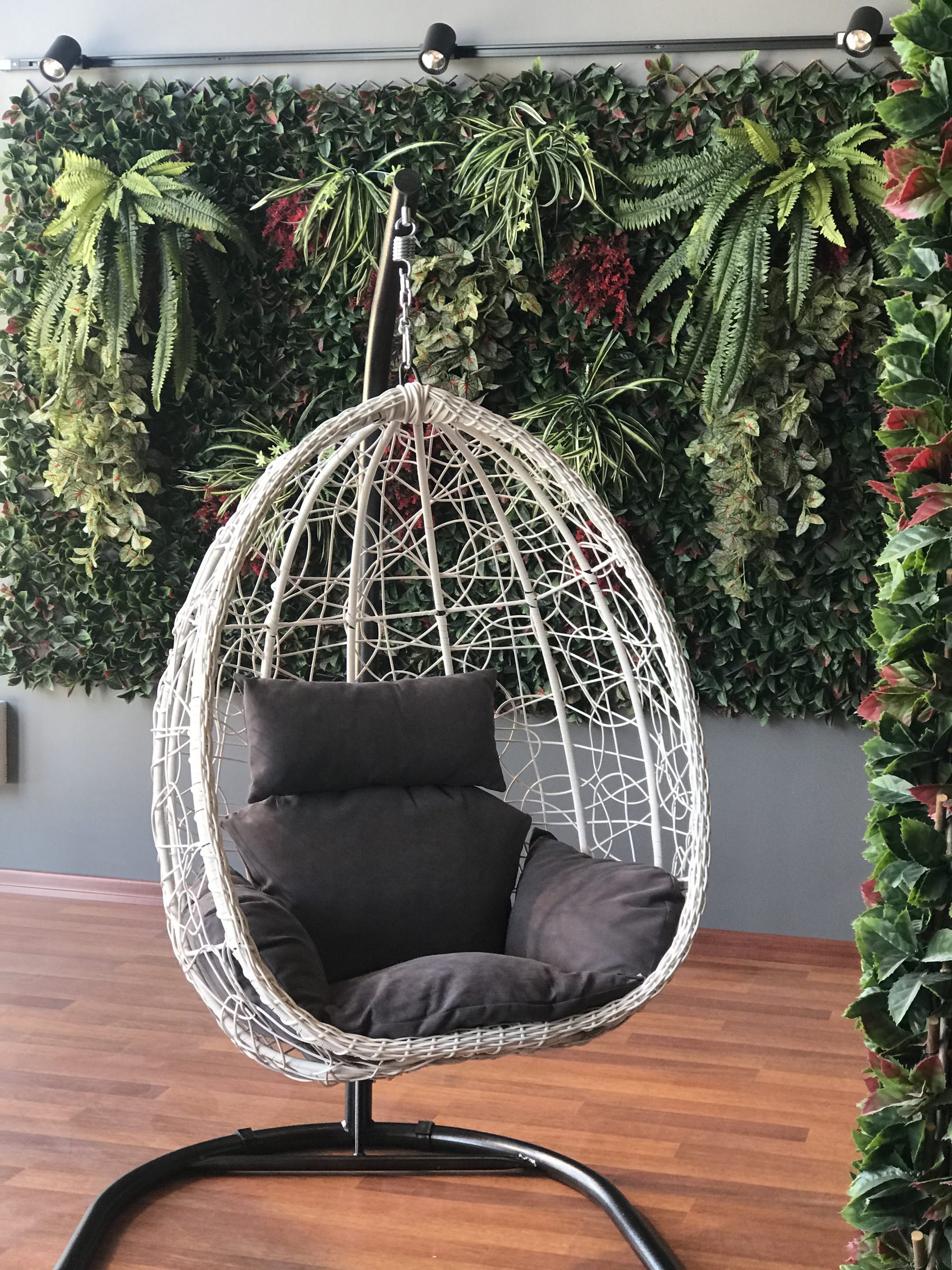 Alüminyum iskelet üzerine 1. sınıf rattan malzeme ile örülmüştür.